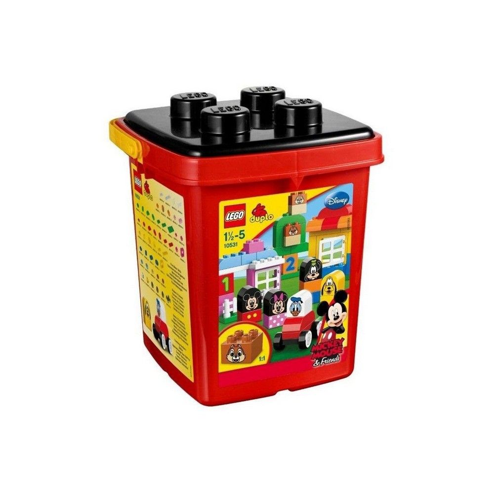 Многофункциональный набор Лего 10531 поможет ребёнку познакомиться с основными персонажами мультфильмов компании Дисней, такими как Микки Маус, Минни Маус, Чип, Дейл, Гуфи, Дональд Дак и Плуто. Построить разноцветные домики с колоннами, верандами и открывающимися окошками будет не трудно, так как все элементы имеют эргономичный дизайн и легко помещаются в руке малыша. Для прогулок новых друзей можно посадить деревья и цветы, а затем обнести получившийся парк белой изгородью. Так же в набор входят кирпичики с числами, которые помогут освоить элементарный счёт.
