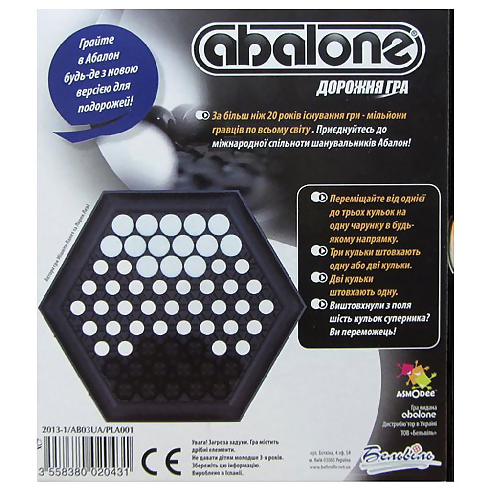 - Вистачить 30 секунд, щоб зрозуміти правила гри Abalone. А коли над одним ігровим полем вітають дві стратегії, безліч думок та дружня атмосфера – вдосконалювати майстерність можна нескінченно.