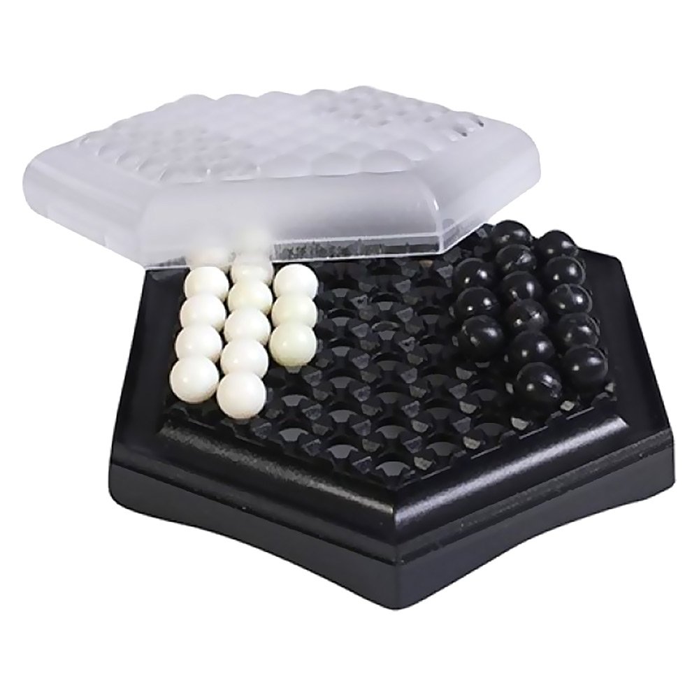 - Власне, правила: гравець одночасно може перемістити 1, 2 або 3 кульки свого кольору у будь-якому напрямку на одну вільну чарунку. Коли кульки гравців стикаються на одній лінії, аналізуємо позиції у всіх напрямках: 3 кульки одного кольору можуть штовхати 2 або 1. Дві можуть штовхати одну. Завдання гравця – аналізувати та створювати такі позиції, коли його кульки переважають у кількості й штовхати суперника до краю поля. Або захищатися від його дій. Переможе той, хто виштовхне 6 кульок суперника за межі поля першим.