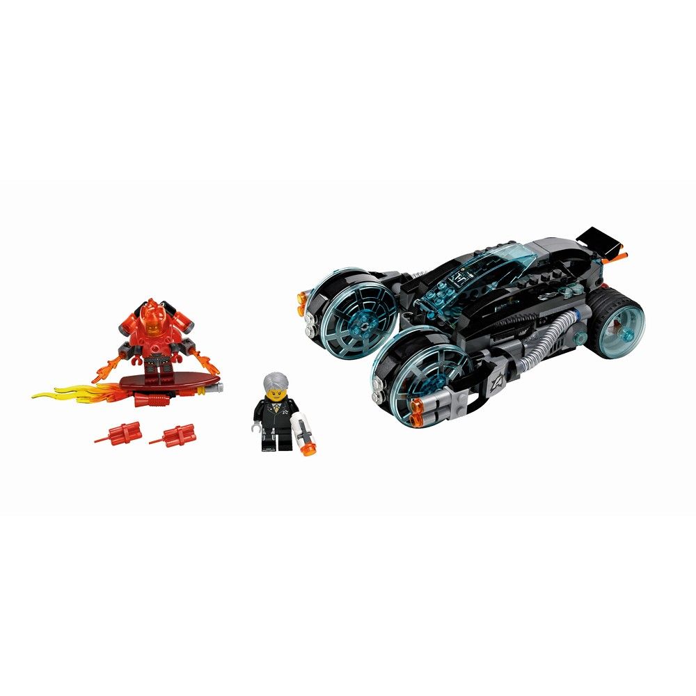 Вызываем ультраагента Соломона Блейза! Инферно пролетает высоко в небе над городом Астор на своем огненном планере. Супервор одет в костюм с огнеметом и сбрасывает на город динамитные патроны, пугая жителей. Немедленно отправляйтесь в погоню на прекрасном трансформере агента Соломона с большими колесами и защитными прозрачными голубыми энергопанелями. Поднимите колеса, чтобы перейти в режим планера, и отправляйтесь в воздушный бой! Наведите на огнеголового преступника двойные лазерные пушки и скрытые автоматические ракетницы. Если атаки Инферно станут слишком горячими и опасными, включите суперкрутую функцию катапультирования избегая пожара! В набор входят 2 минифигурки с разнообразным оружием и аксессуарами : Инферно и ультраагент Соломон Блейз.