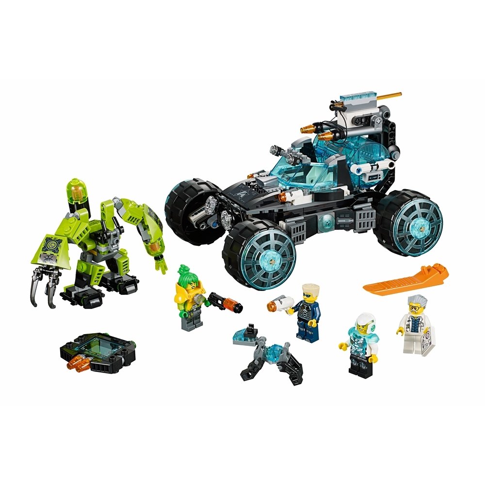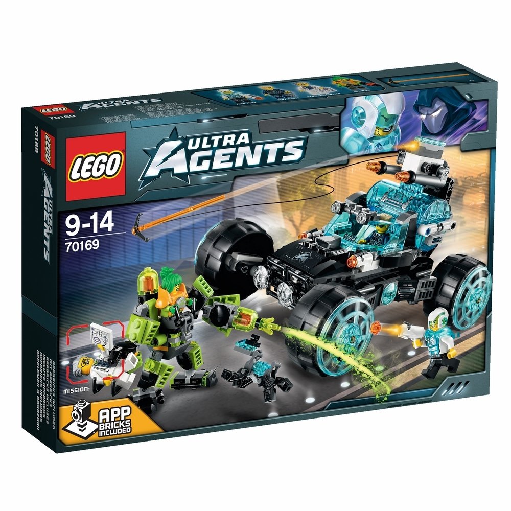 Вызов элитного агента Джека Фьюри и ультра-агента Трея Свифта! Злая Токсикита вернулась, чтобы отомстить. Используя силу супертоксичного робота, она хочет выжать из профессора Мозкоштейна секретные данные, чтобы ее плохой хозяин Антиметтер смог воплотить свои зловещие намерения. Мчитесь спасать профессора в агентском полноприводном авто с огромными колесами и амортизационной подвеской. Стреляйте из шутеров, вращайте турель, запрокидывайте хватательный крюк. Захватите работа Токсикиты и нападите на нее. Остерегайтесь токсического орудия и освободите профессора Мозкоштейна из цепких когтей. Воспользуйтесь помощью супер крутого агентского пса-робота П.А.П. и атакуйте из шутера Джека Фьюри. Преодолейте Токсикиту и посадите ее в тюремную камеру, чтобы не сбежала! Затем на планшете выполните другие потрясающие цифровые миссии, используя 4 ультра-приложения "Кубики"! В набор входят 4 мини-фигурки с разнообразным оружием и аксессуарами: элитный агент Джек Фьюри, ультра-агент Трей Свифт, Токсикита и профессор Мозкоштейн.