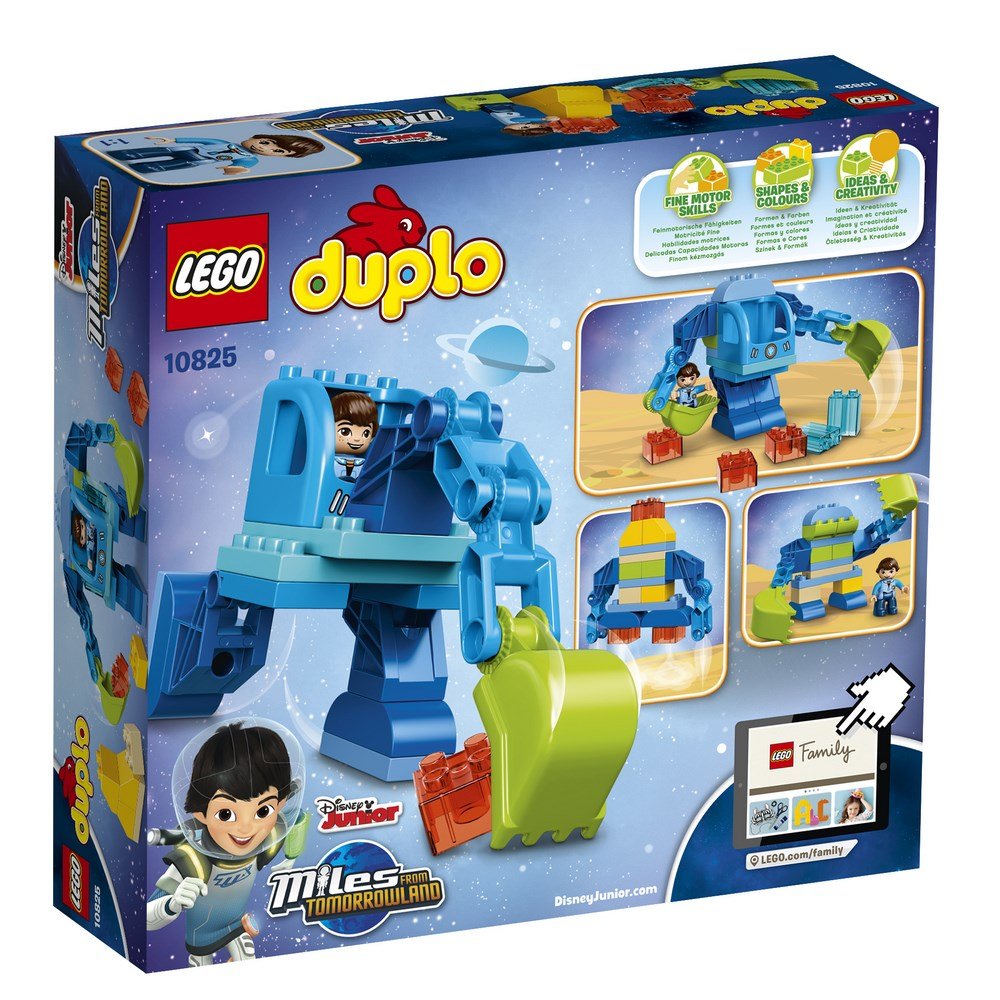 Поклонникам Майлза с Другой планеты из набора Disney Junior понравится Майлз, сидящий в кабине своего невероятного роботизированного костюма и готовый исследовать новые планеты. Помоги Майлзу использовать большие руки-ковши подвижного экзокостюма, чтобы выкапывать и изучать космические камни. Маленькие дети могут также создавать из кубиков своих собственных роботов и отправлять их на поиски необыкновенных приключений. Запрыгивай в подвижный экзокостюм и начинай путешествие в космосе с Майлзом!