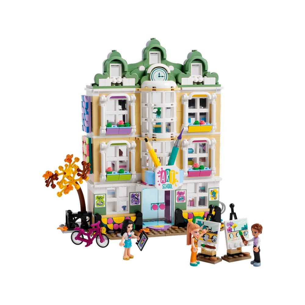 Надихайте дітей на творчість з набором «Художня школа Еммі» (41711). Це чудовий подарунок для дітей віком від 8 років і старше. Усередині красивої будівлі є три поверхи, повні творчих іграшок, де хлопчики та дівчатка можуть разом із Еммою з LEGO® Friends вивчати кераміку, модний дизайн та 3D-друк.