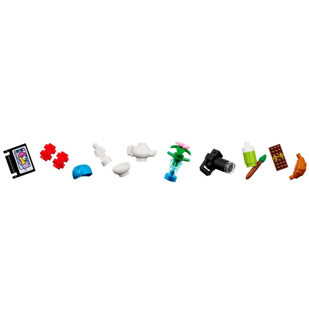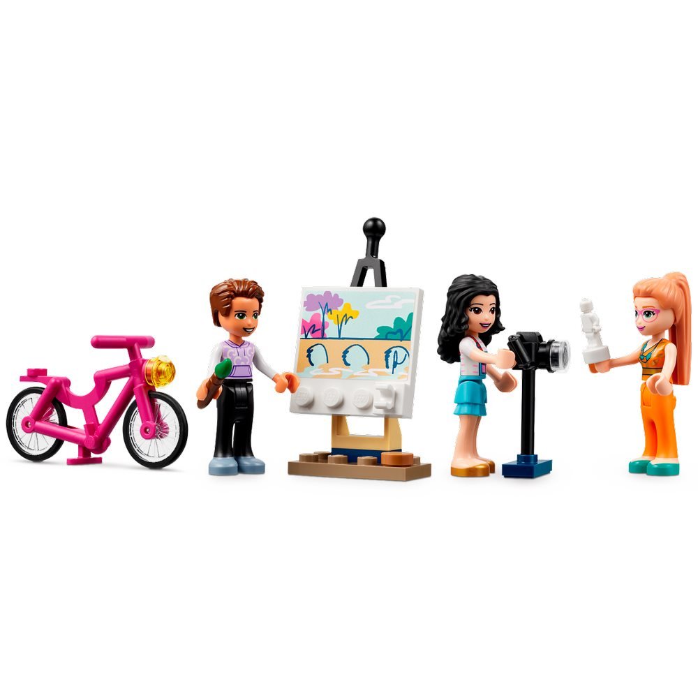 - Що в коробці? Включає 844 елементи для створення триповерхової будівлі з класами та художніми студіями, а також барвисті аксесуари та трьох персонажів LEGO® Friends.
