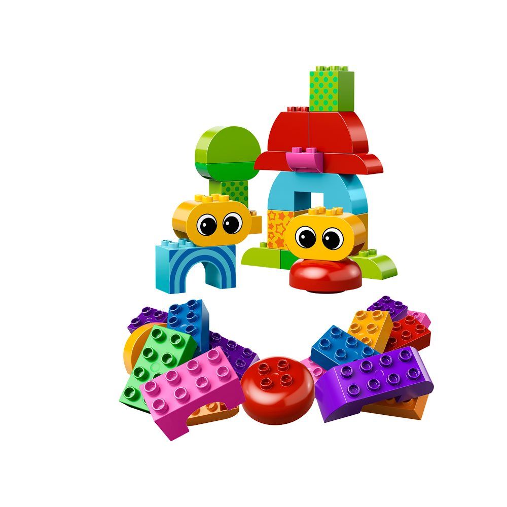 Позвольте Вашему малышу исследовать, играться и создавать с помощью полностью нового набора LEGO® DUPLO® для малышей! Экстрабольшие кубики LEGO® DUPLO® замечательно подходят для знакомства малышей с творческим строительством. Этот набор, который состоит из 37 деталей, включает у себя кубики с рисунками и нарисованными глазами, которые полностью совместимы со стандартными кубиками и элементами DUPLO. К тому же, крышка коробки раскладывается вдвое и служит удобной основой для строительства.