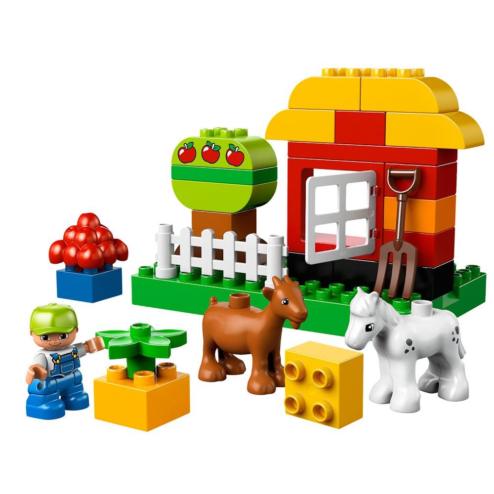 Прекрасный солнечный день для того, чтобы весело выращивать растения в селе "Мой первый сад". Пока козочка и пони пасутся на поле, мальчик ухаживает за овощами. Собери спелые яблоки! Ухаживай за садом, работая вилами, но не забудь построить ограждение, чтобы голодные коза и пони не добрались до фруктов! В набор входит фигурка мальчика LEGO® DUPLO®. - В наборе фигурка мальчика LEGO® DUPLO® - Базовая плита DUPLO, домик с окном, ограждение, вилы, цветы, яблоня с кубиком DUPLO с изображением яблока и разнообразные кубики DUPLO - Животные DUPLO : коза и пони - Поставь ограждение, чтобы не впустить голодных животных в сад! - Используй вилы, чтобы ухаживать за растениями! - Присматривай за козой и пони! - Собери эксклюзивную козу DUPLO!